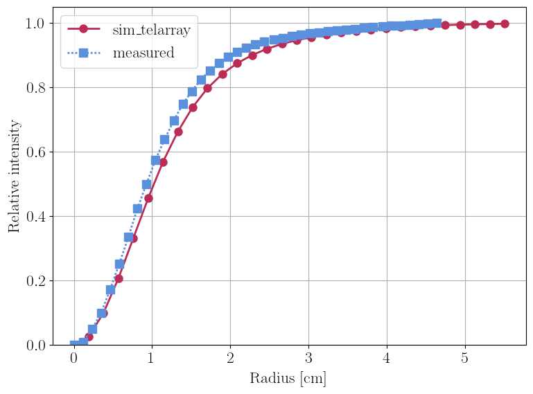 simtools-compare-cumulative-psf --site North --telescope LST-1 --model_version 5.0.0 --data PSFcurve_data_v2.txt